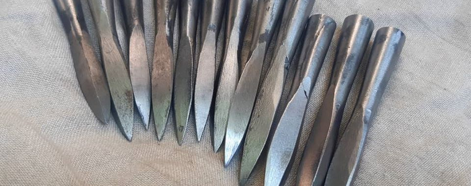Full set of twelve 15th century military arrows, in 3/8" ash with tapered horn inserts, verdigris compound and silk binding, armed with steel Type 9s ________